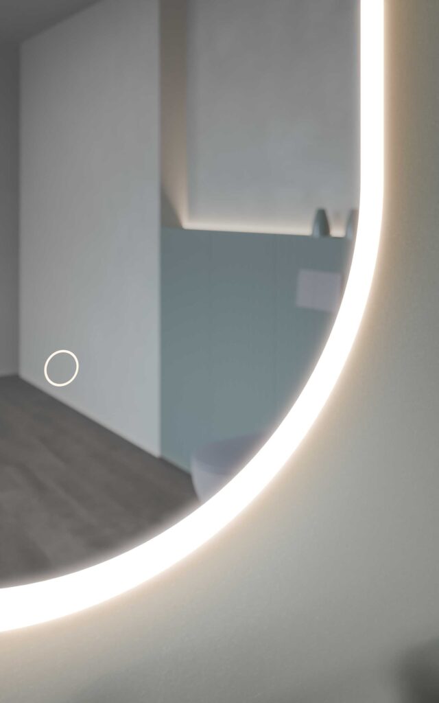 In termini progettuali, questo significa che lo specchio non è più solo riflessione, ma diventa un punto luce architettonico, capace di dare ritmo alla parete e di alleggerire visivamente la composizione.