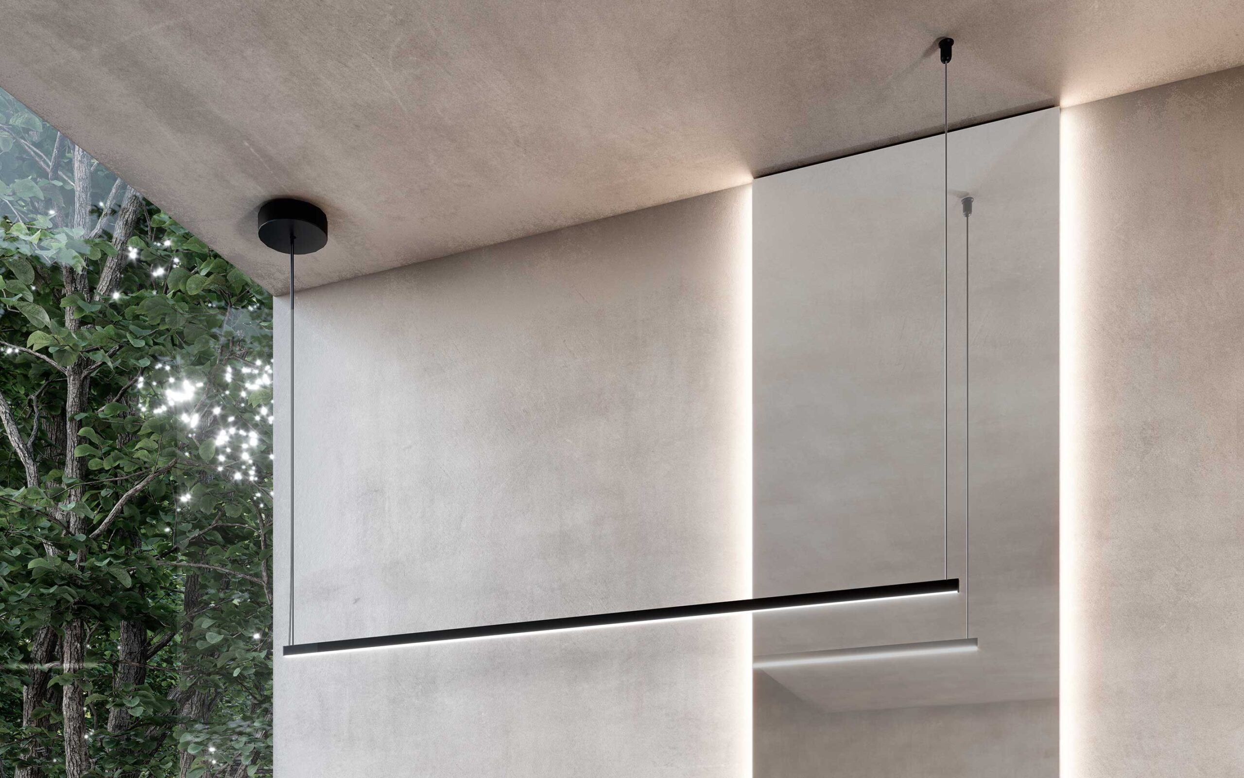 Colonne e pensili illuminati: profondità visiva e leggerezza