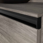 Le basi Wally possono essere abbinate a alzatina e luci LED, creando una fascia luminosa che accompagna il top e aggiunge profondità alla parete. Nei pensili Wally, invece, la luce LED sul fondo diventa un segno discreto ma molto efficace, utile sia dal punto di vista funzionale sia per la costruzione dell’atmosfera complessiva. I cataloghi mostrano pensili Wally di profondità 17 cm con LED sul fondo e in differenti larghezze, capaci di dominare visivamente l’area bagno senza appesantirla.