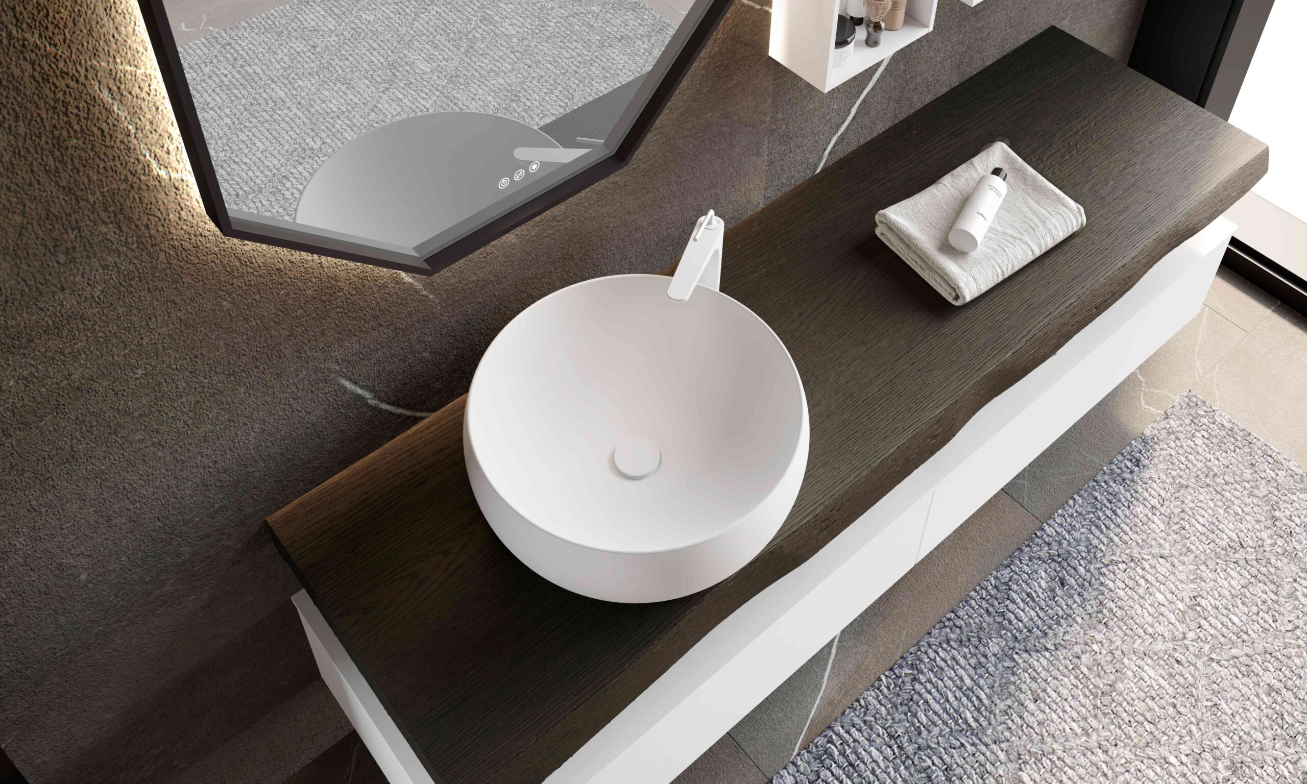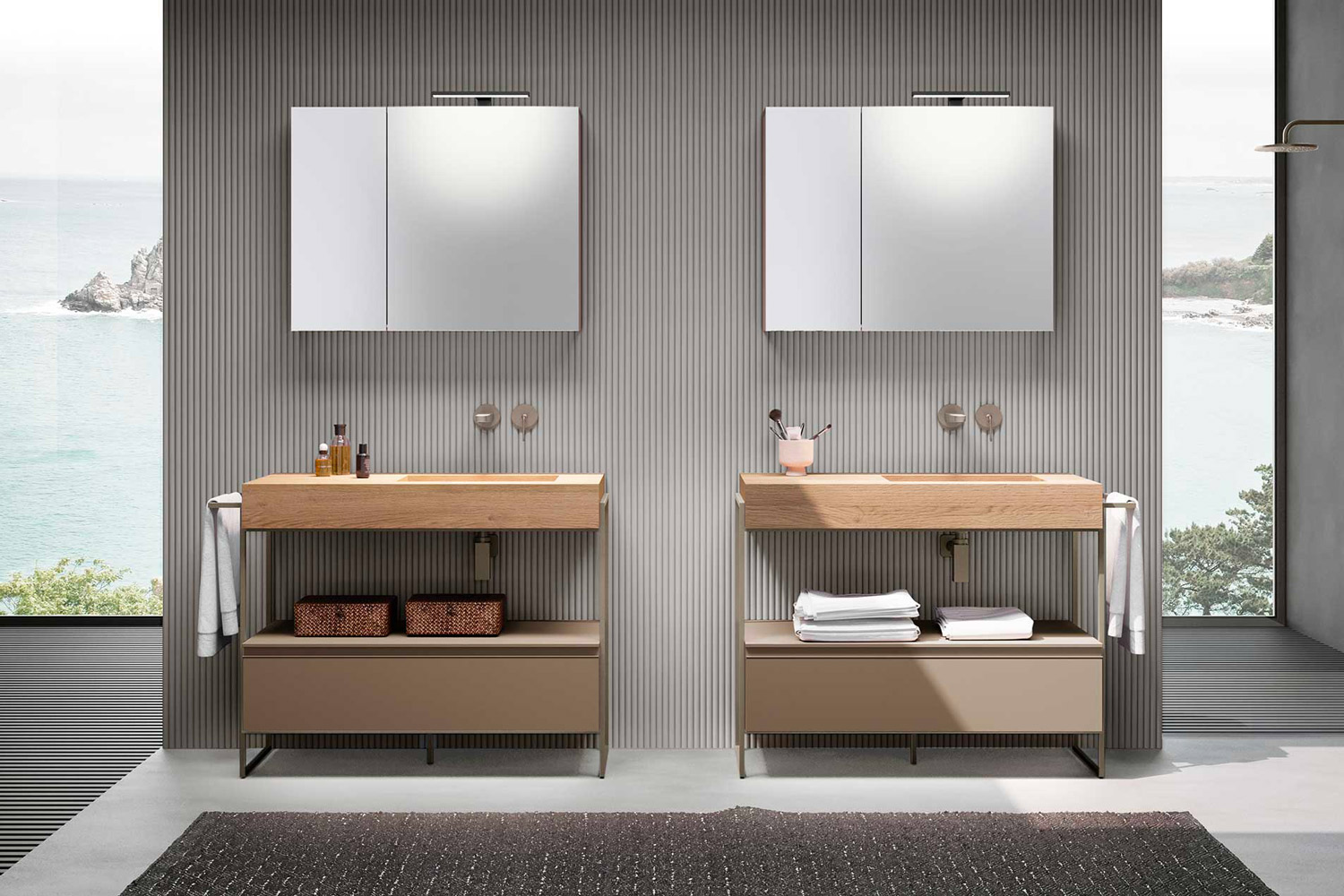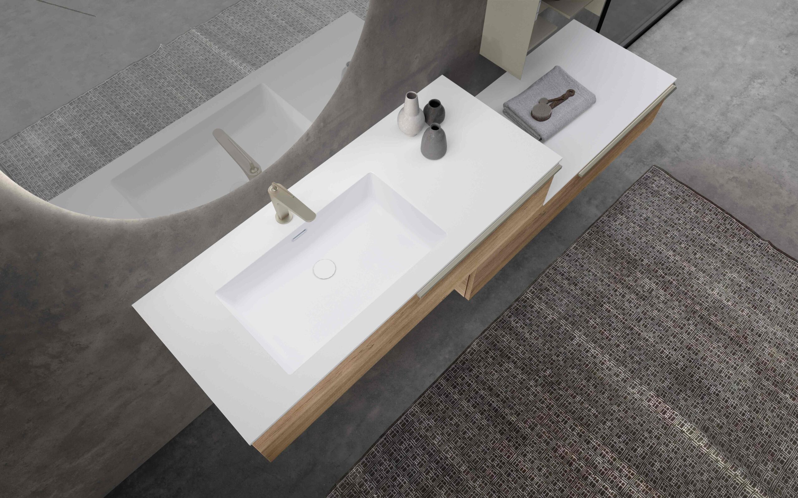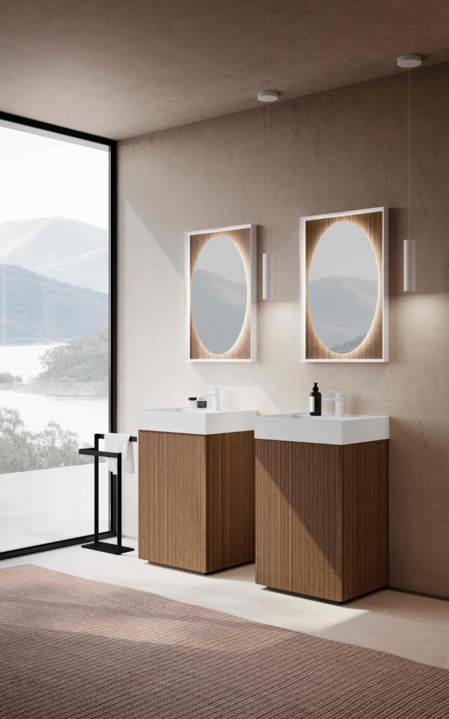 The double washbasin is the perfect solution for shared bathrooms used by several people, such as couples or families. Thanks to the presence of two basins, it allows multiple users to use it at the same time, reducing waiting times and improving bathroom functionality. It is ideal for medium to large spaces in luxury homes.