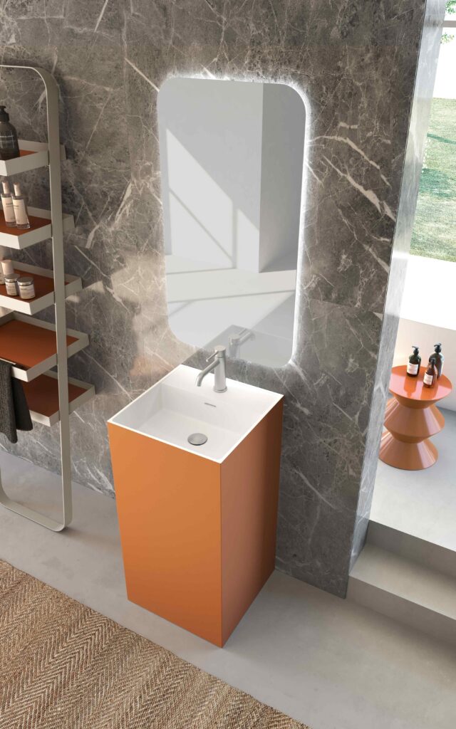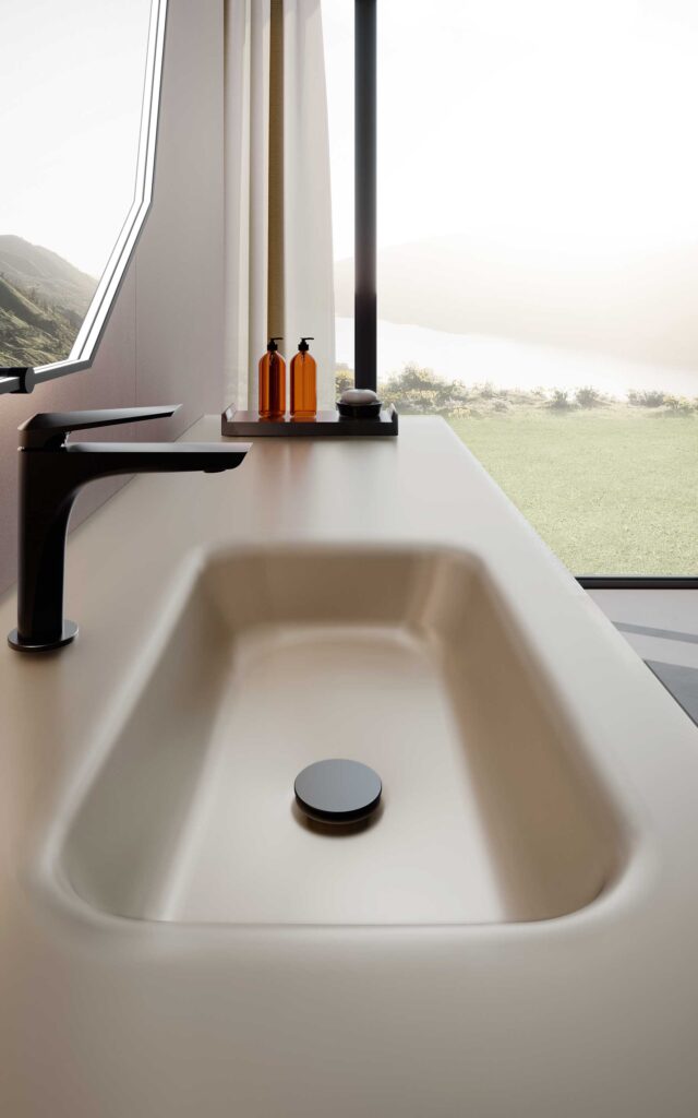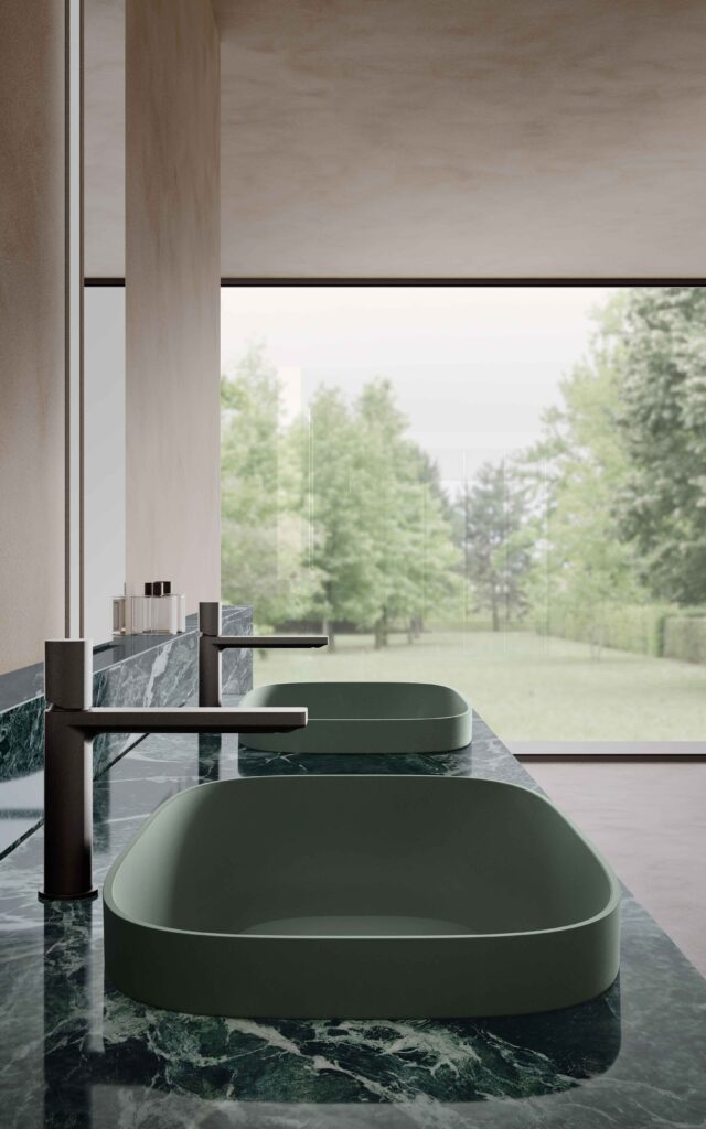 The Azzurra range includes floor-mounted washbasins, monolith washbasins with integrated basin, all-out washbasins and even space-saving mini washbasins in a variety of sizes, shapes, materials and finishes for endless design possibilities.